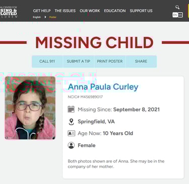 Anna is a US citizen; she was born in the United States to a US-citizen-father. The Fairfax County Juvenile and Domestic Relations Court has awarded full legal and physical custody of Anna to her father, ruling that he is a fit parent. Anna’s father is a retired US Air Force veteran. Anna’s mother is deceased as of December 2024. Nevertheless, Anna’s aunt, Marlene Urquizo Franco, has refused to allow Anna to return to the United States, and filed for custody in Peruvian courts -- without informing Anna’s father. Marlene is raising Anna as her own child, effectively as a surrogate for the children she never had. Efforts of the local Fairfax County Police, FBI, and US Department of State have been unsuccessful in bringing Anna home. The authorities in Peru have not been helpful.
